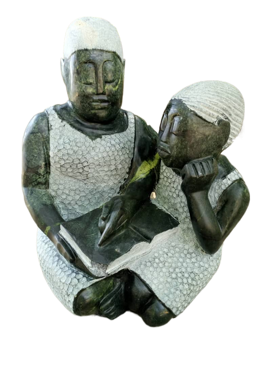 Teach Me to Read - Stone Sculpture Made of Leopard Rock By Jonathan Mondorohuma | Zimbabwe