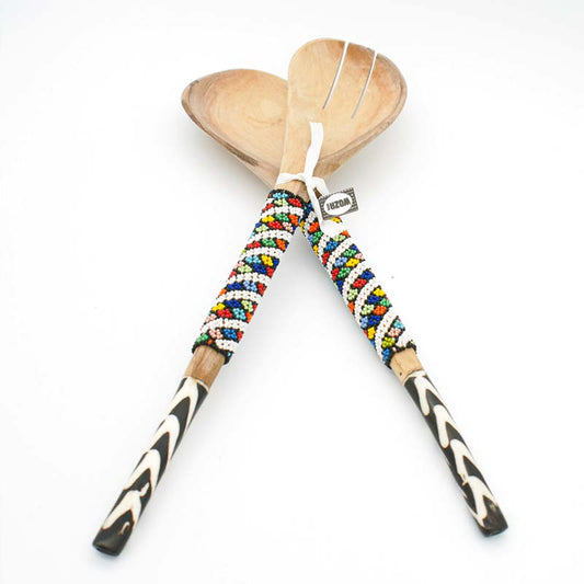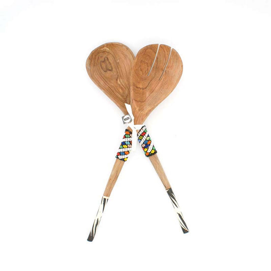 Wooden Salad Server with Bone Handle and Thin Beaded strip | South Africa
