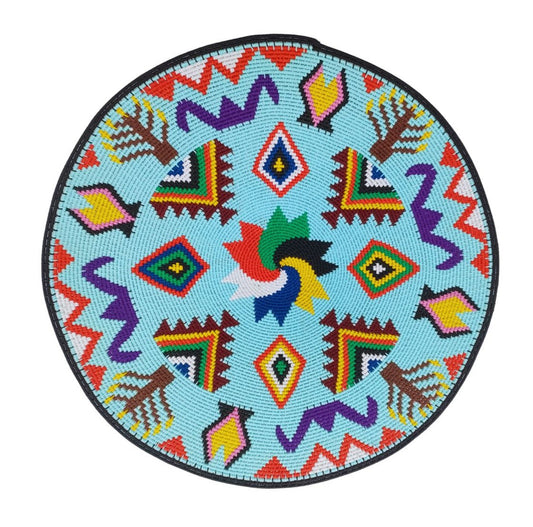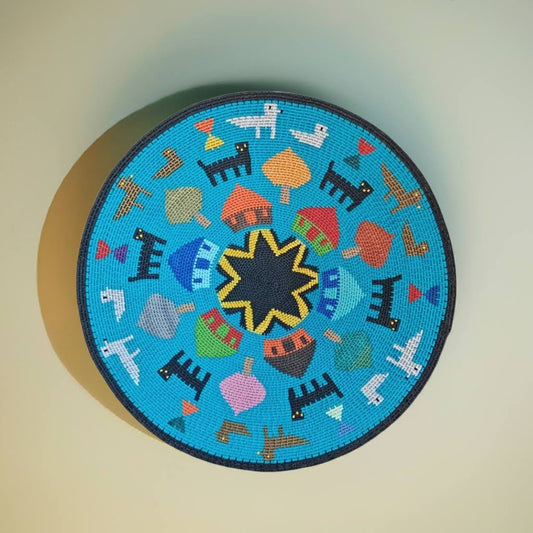 Shallow Hardwire Bowl 39cm Blue Pictorial WB0071 By Busisiwe Mayise | South Africa.