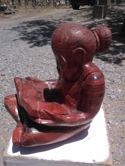 Study Time - Stone Sculpture Made of Red Jasper by Jonathan Mhondorohuma | Zimbabwe