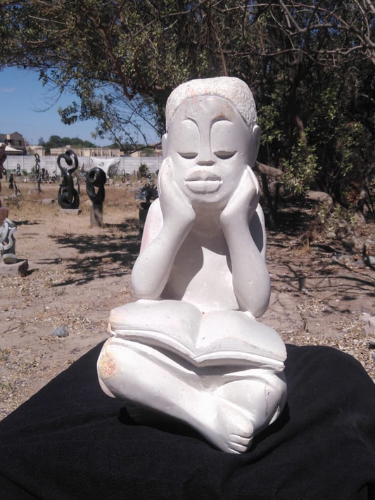 Studious Girl - Stone Sculpture Made of White Opal by Jonathan Mhondorohuma | Zimbabwe