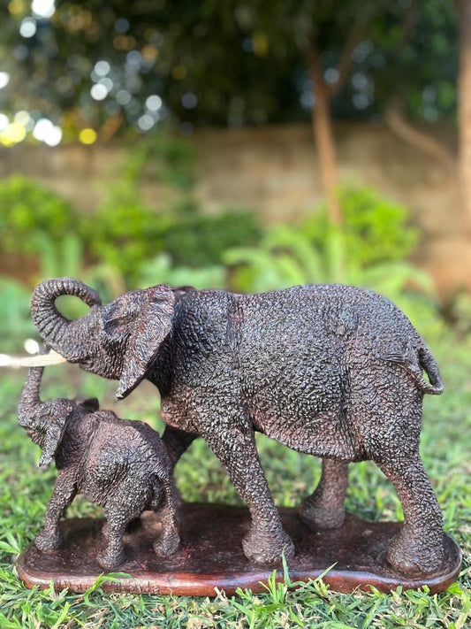 Elephant Mother and Calf - Wooden Sculpture Made of Ironwood by Ntokozo Patson Sibanda | Zimbabwe