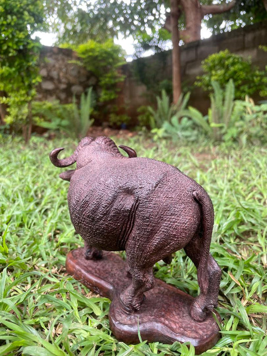 Buffalo Ready To Fend Off Attack - Wooden Sculpture Made of Ironwood by Ntokozo Patson Sibanda | Zimbabwe
