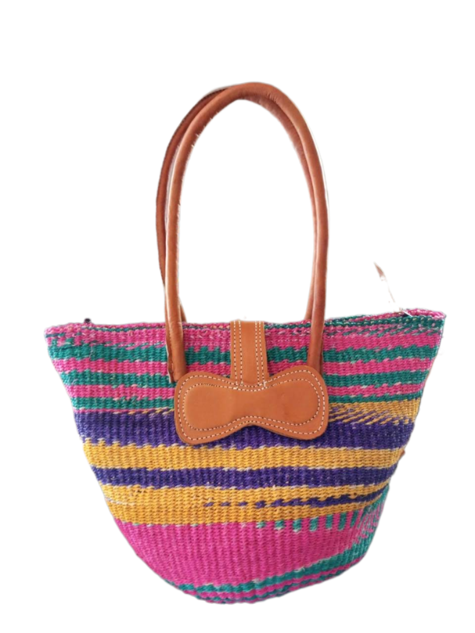 Our basket bags are made in a wide variety of colours and sizes. We have 8-inch and 10-inch sizes . If you can’t find the colours you are looking for on our online shop, please contact us and we can have them customised for you. The bags are handmade using 100% natural sisal fibre and leather.