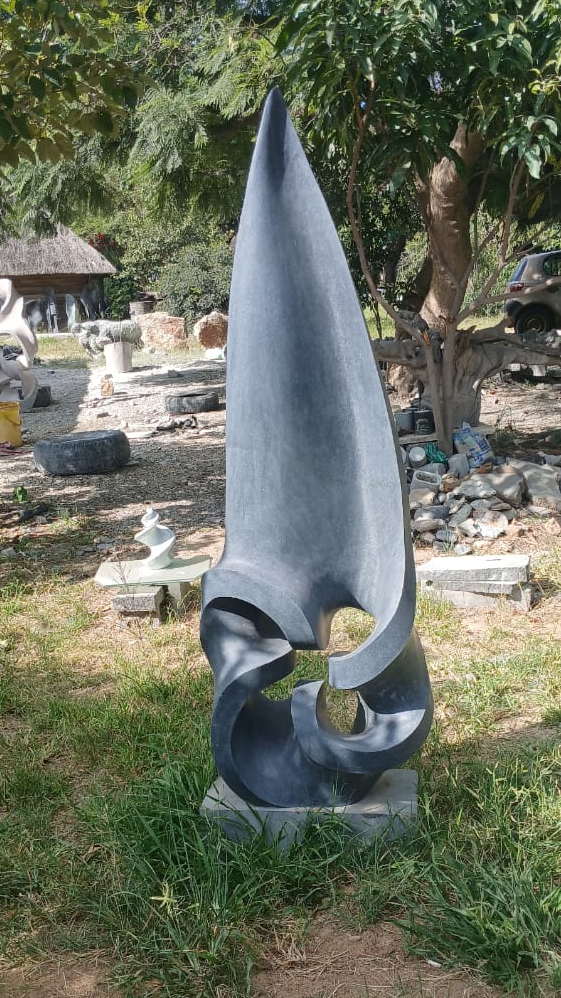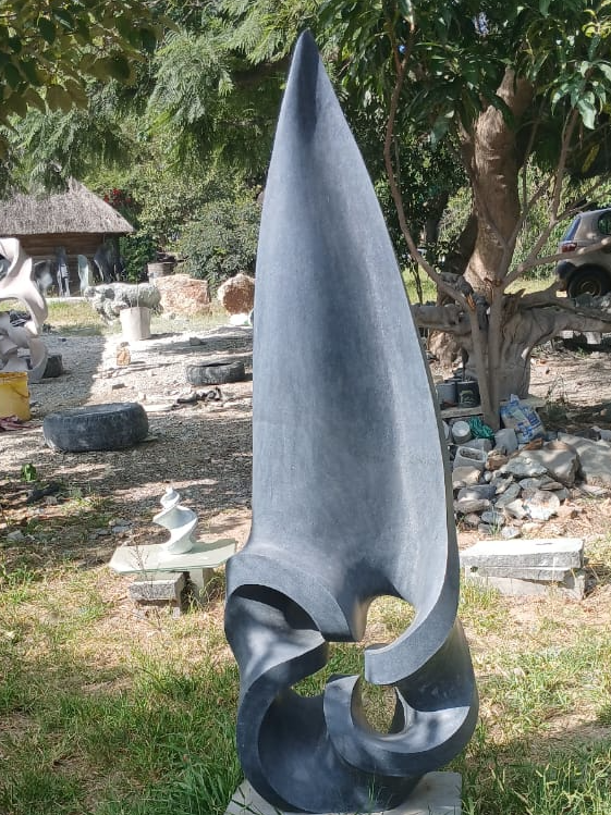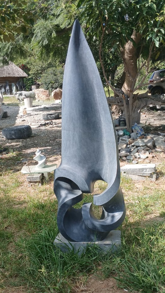 Another Shooting Star – This breathtaking stone sculpture by Zimbabwean artist Owen Mlungisi is crafted from durable Springstone and stands over a meter and a half tall, making it a commanding focal point in any space. The design features a dynamic spiral that gracefully ascends from its base and shoots upward like an arrow toward the sky, symbolizing aspiration and boundless energy. Perfect for both indoor and outdoor displays, this piece captures the essence of movement and ambition, transforming any setting into a space of inspiration and wonder.Couldn't load pickup availability