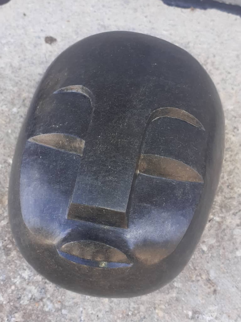 Ball Head – A striking stone sculpture by Precious Mashaya from Zimbabwe, carved from durable Springstone. This minimalist head sculpture features smooth, rounded contours that evoke a sense of completeness and serenity. Its simple yet powerful form captures the essence of refined elegance, making it a versatile addition to any art collection or interior décor. Precious Mashaya’s meticulous craftsmanship shines through in every curve, offering a subtle yet impactful statement piece that invites quiet contemplation and timeless style.
