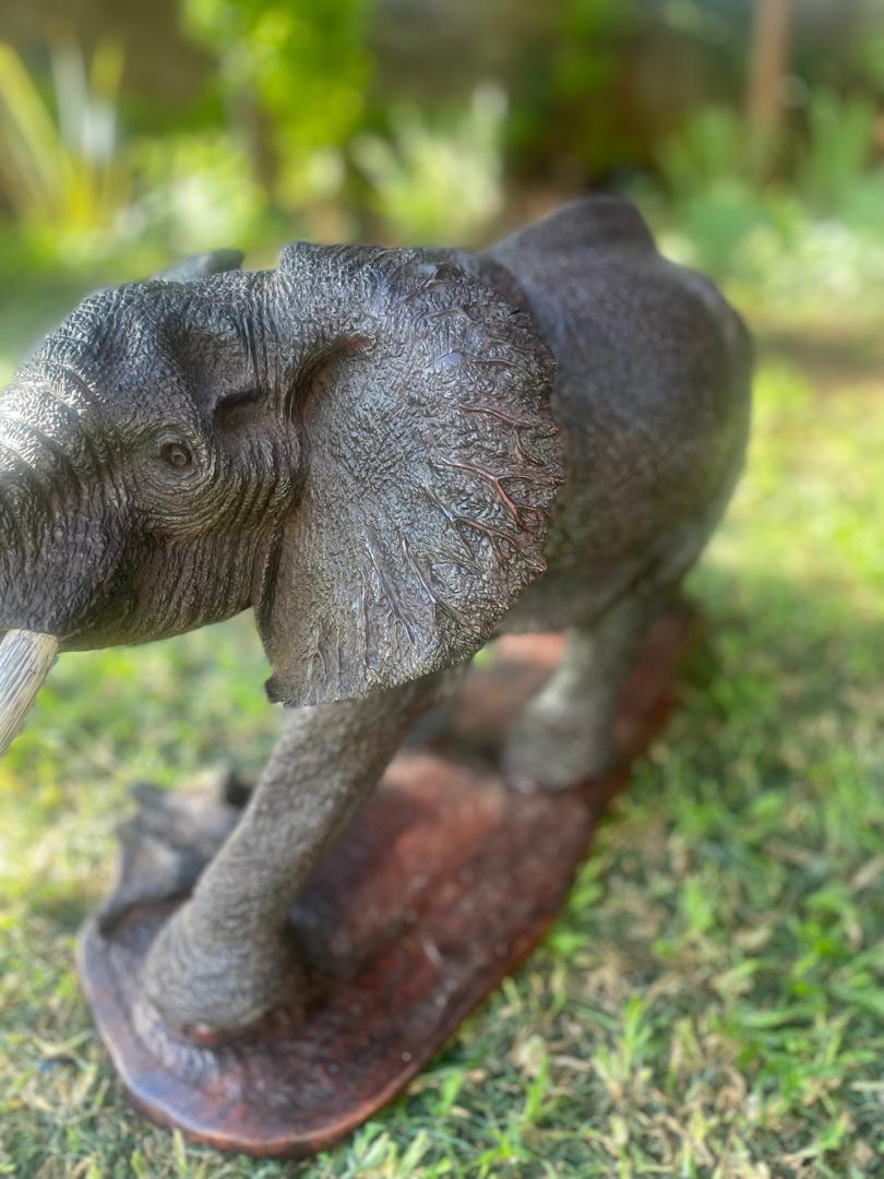 Carved from dense ironwood by Zimbabwean artisan Ntokozo Patson Sibanda, this striking elephant sculpture captures the majesty of Africa's most iconic wildlife. The piece showcases the natural grain and rich patina of the wood, revealing the artist's meticulous hand-carving technique. The substantial weight and smooth finish make it a commanding presence in any space—perfect for collectors who appreciate authentic African craftsmanship and the story behind each creation. A timeless investment in artisanal sculpture.