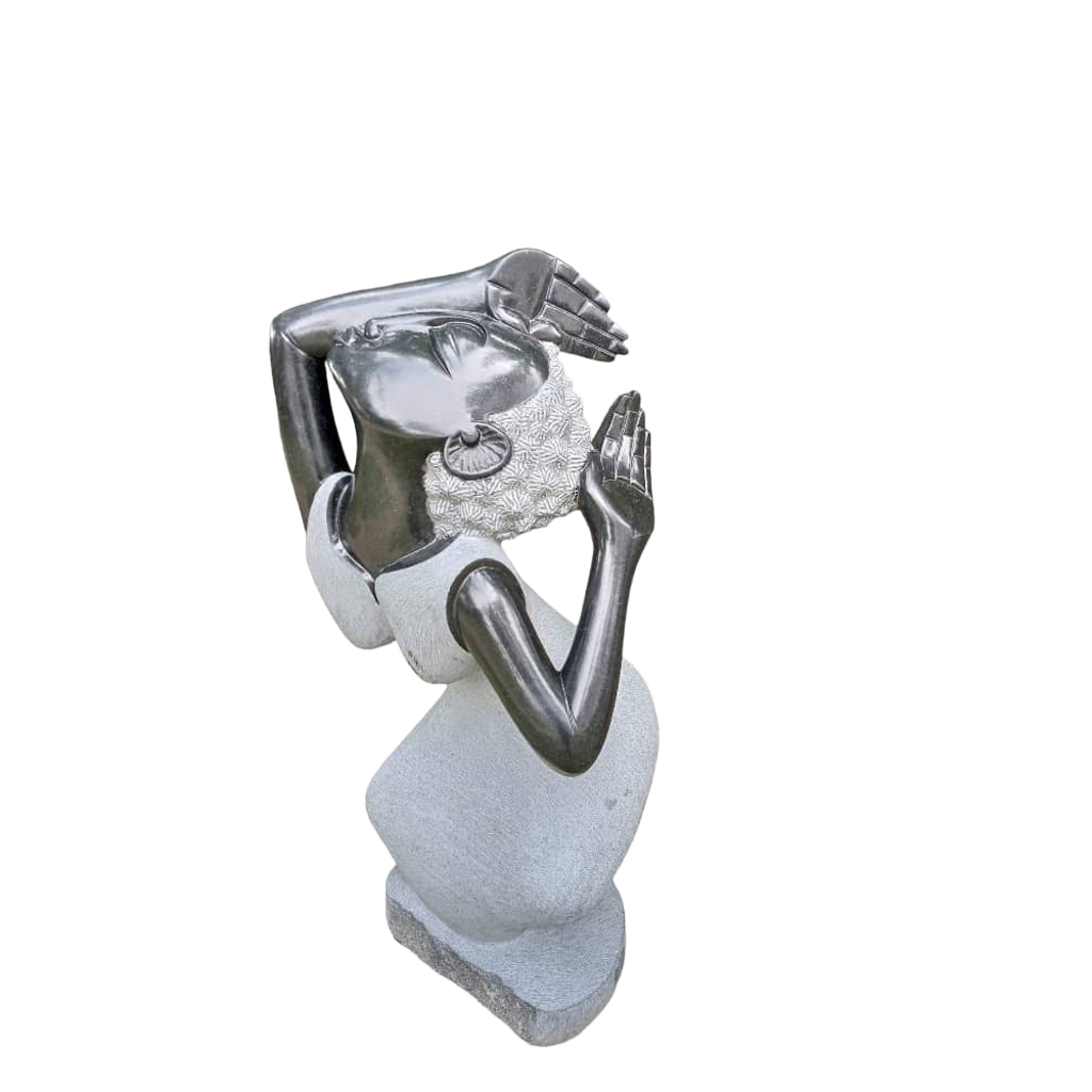 The "Choreographer" stone sculpture by Benjamin Mashaya is a masterful representation of movement and passion, expertly carved from serpentine (springstone), a renowned material from Zimbabwe. This striking piece captures a female dancer in the midst of an expressive and elegant dance, highlighting her fluid, intricate motions with remarkable detail. The sculpture’s polished surface reveals the natural beauty and subtle hues of the stone, enhancing its lifelike quality and emotional impact. Perfect for admirers of African art and dance, this sculpture brings energy, creativity, and cultural richness into any environment, making it an inspiring centerpiece for your collection.