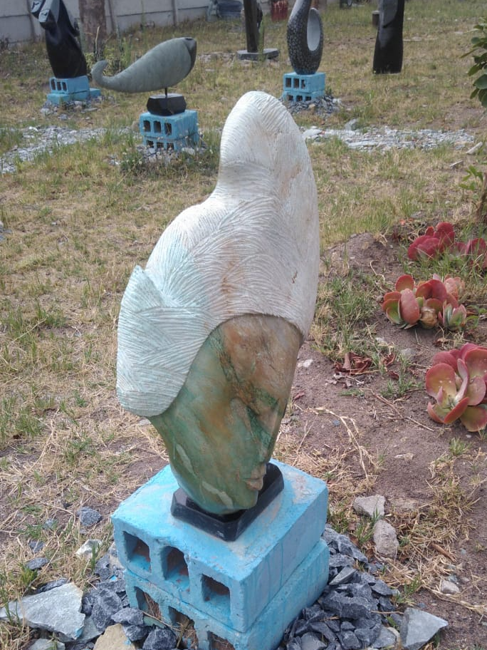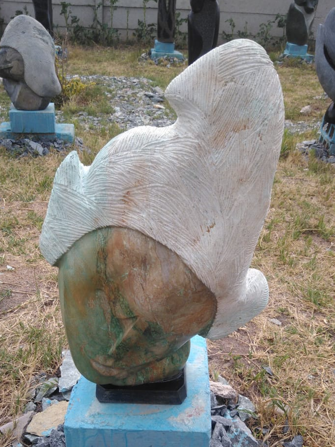 Crowning Glory – A stunning stone sculpture crafted from lustrous Verdite by Zimbabwean artist Richard Mupumha. This exquisite piece celebrates the elegance and beauty of a woman's hair, often regarded as her crowning glory. A timeless work of art that radiates grace and sophistication.