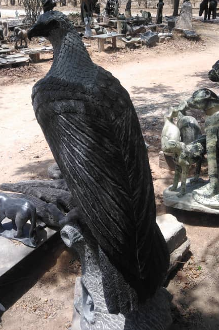 This stunning Springstone sculpture by Zimbabwean artist Dickson Shinga captures the elegance and power of an eagle in flight. With intricate feather details and a dynamic posture, the piece embodies strength, vision, and freedom. Perfect for indoor or outdoor display, it reflects both artistic mastery and a deep connection to nature, making it an ideal addition for wildlife enthusiasts and art collectors.