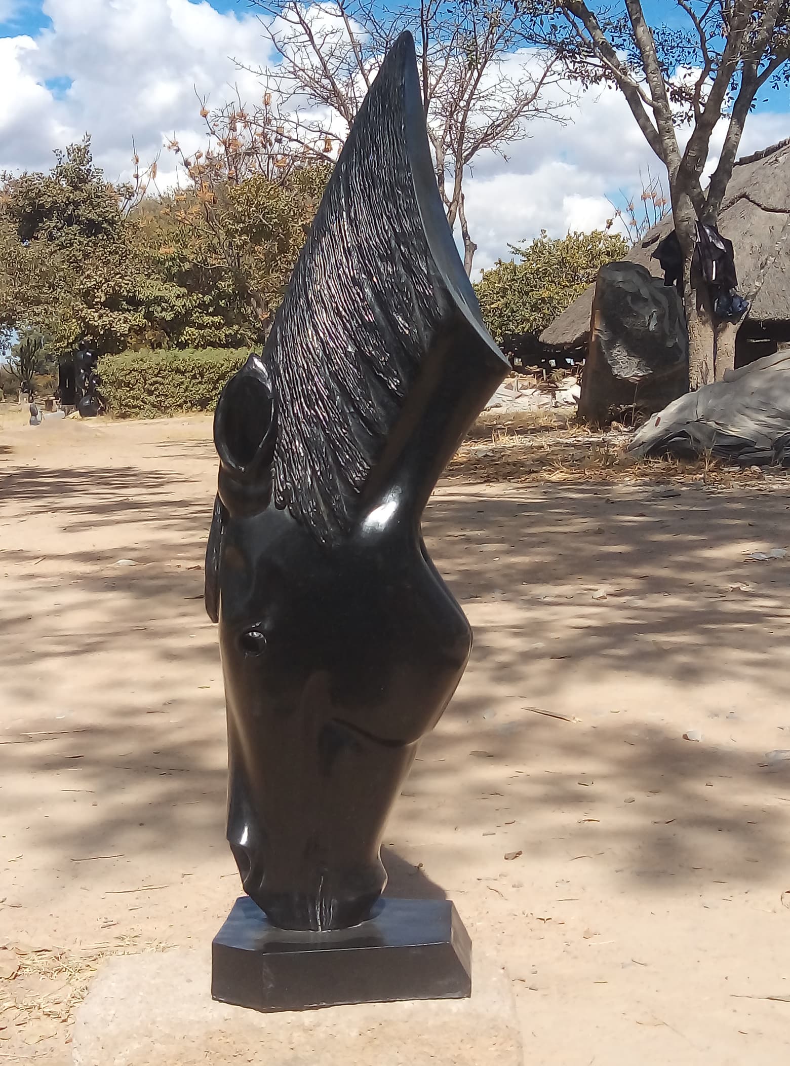 Equine Grace is a captivating Springstone sculpture crafted by Zimbabwean artist Taurai Maisiri. Demonstrating exceptional craftsmanship, this piece features intricate and realistic detailing of a horse’s head and neck, capturing the animal's strength, grace, and personality. Made from Zimbabwe’s renowned Springstone, it combines durability with a beautifully textured finish. Whether displayed in a home, gallery, or dedicated collection, Equine Grace is a striking work of art that celebrates the majesty of horses and adds a touch of elegance and artistry to any space.