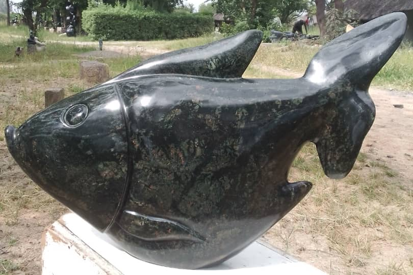 Fish 1 - Stone Sculpture Made of Fruit Serpentine by Edmore Chijumani | Zimbabwe