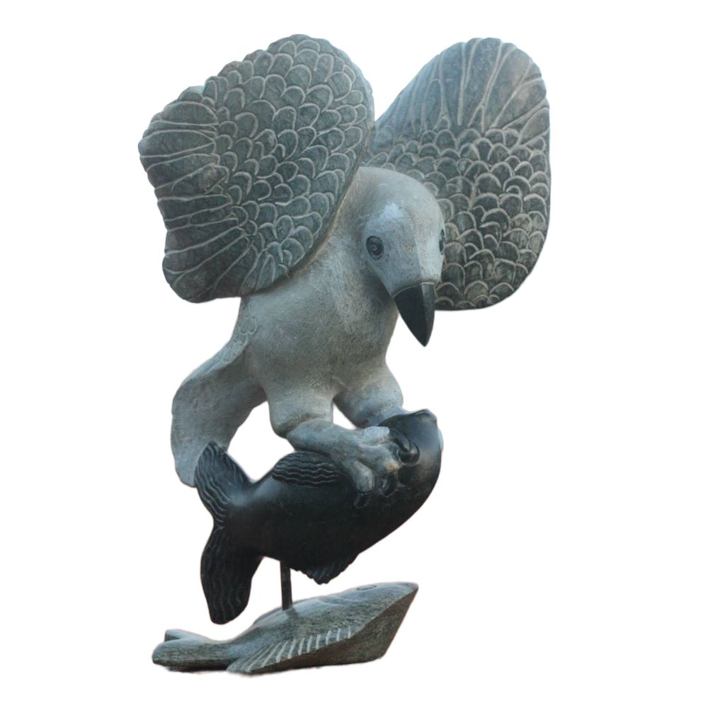 Fish Eagle - Stone Sculpture Made of Black Serpentine by Passmore Mashaya | Zimbabwe