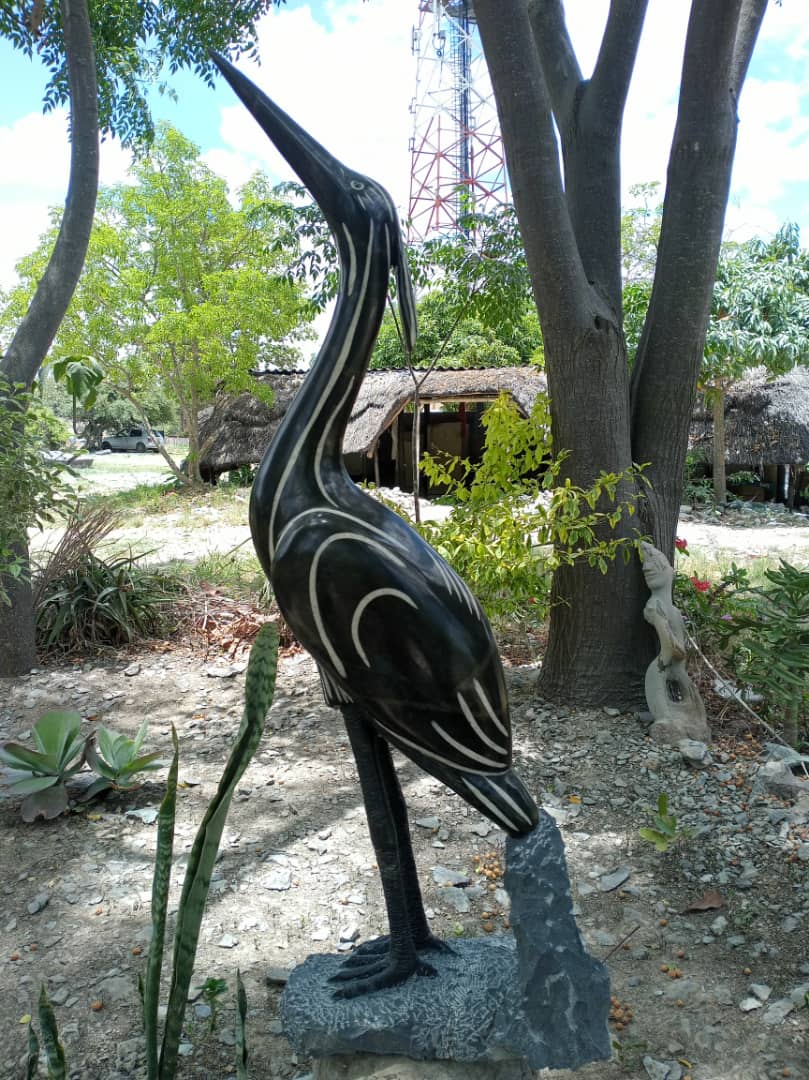 'Heron,' is a remarkable Springstone sculpture by Shepherd Deve of Zimbabwe, embodying profound African symbolism. Revered for symbolizing patience, grace, and wisdom, the heron serves as a mystical bridge between the physical and spiritual dimensions. in various African cultures. This artwork skillfully captures the heron's elegance, emphasizing its symbolism. Celebrated for its precision in fishing, the heron becomes a living metaphor for invaluable skills.