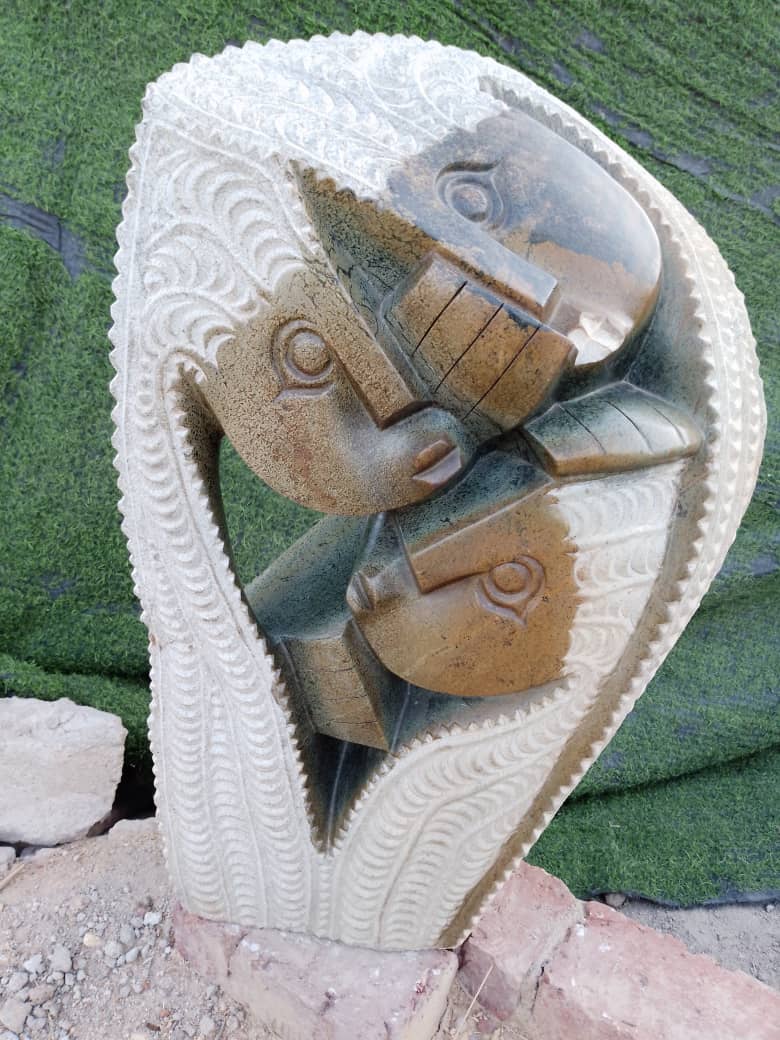 Witness the exquisite artistry and natural beauty of stone sculpture through "I Love You All," a breathtaking creation by Eckel Nyamhondoro. Crafted from fruit serpentine rock, this sculpture embodies the enduring bond of parental love for their children. A timeless masterpiece that mirrors the eternal essence of this profound connection.