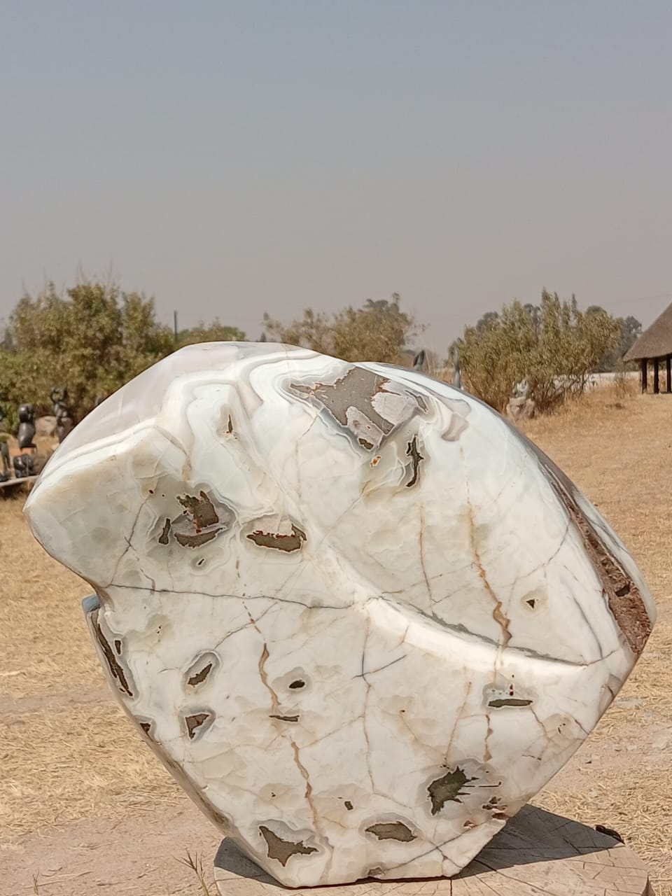 "Powerful Warrior," crafted by Zimbabwean artist Batsirai Tago from Agate stone, symbolizes strength, protection, and courage. Agate is often associated with emotional stability, inner calm, and self-confidence, and this beautiful piece embodies these qualities perfectly. It exudes an air of stability and security, making it a meaningful addition to any space.