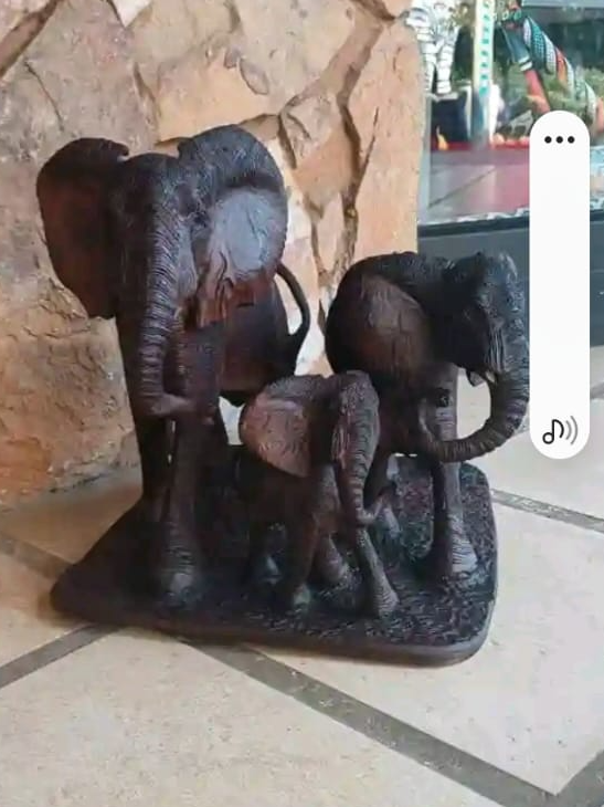 Pride of Elephants: Experience the majesty of the wild in a whole new way with "Pride of Elephants", a breathtaking wooden sculpture that showcases three elephants of different ages and sizes, craftily carved from Ironwood by Zimbabwean artist Killian Torovasei. This magnificent piece masterfully captures the intricate dynamics of an elephant family, with each elephant beautifully rendered in precise detail, from the wispy trunks and tusks to the wrinkled skin and expressive eyes. The Ironwood's warm, dark tones add a sense of earthiness and authenticity to the sculpture, while the varying textures and details bring each elephant to life, as if they're about to roam free from the savannah plains. A true masterpiece of African art, "Pride of Elephants" is a majestic addition to any space, perfect for wildlife enthusiasts, nature lovers, and anyone who appreciates the beauty and wonder of the natural world.