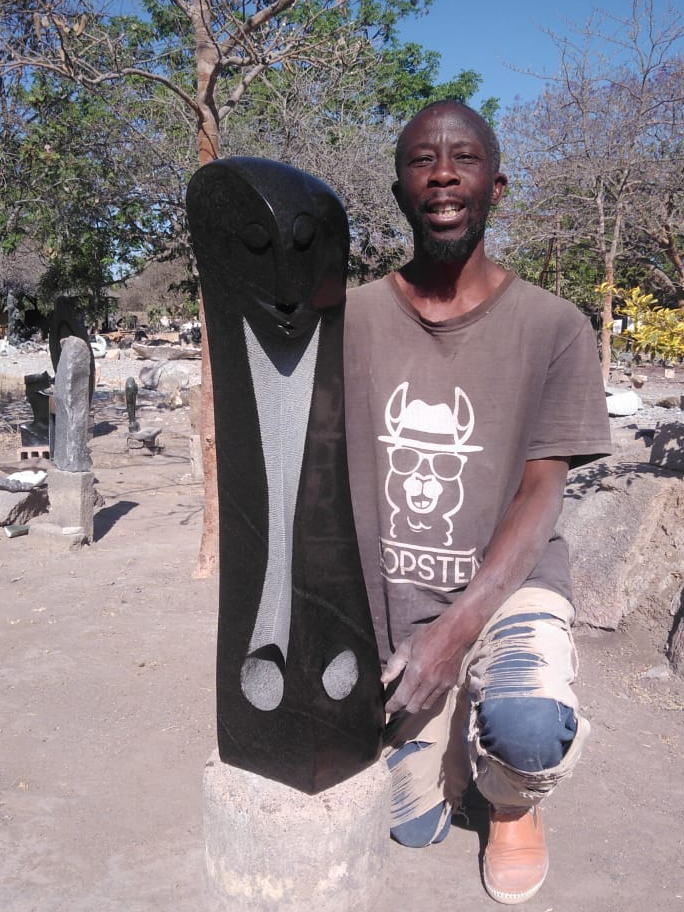Resting Bachelor - Stone Sculpture Made of Springstone by Antony Masamba | Zimbabwe