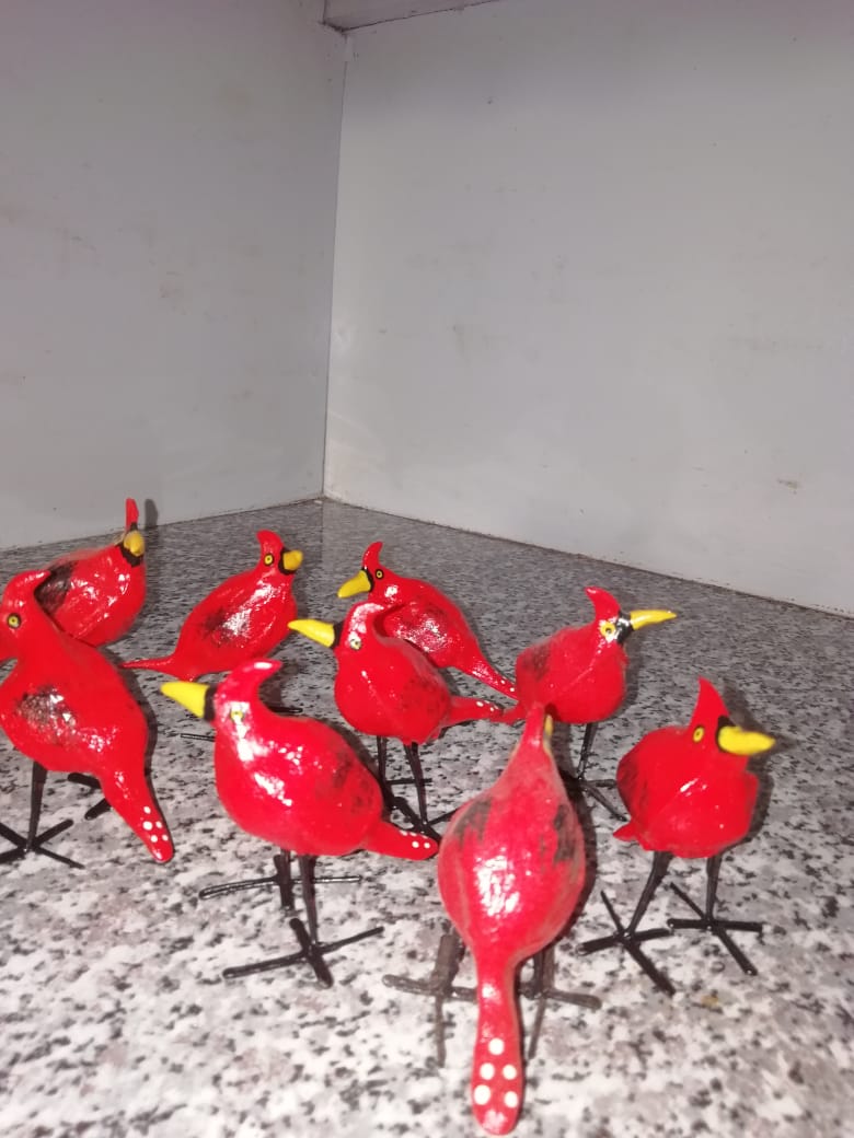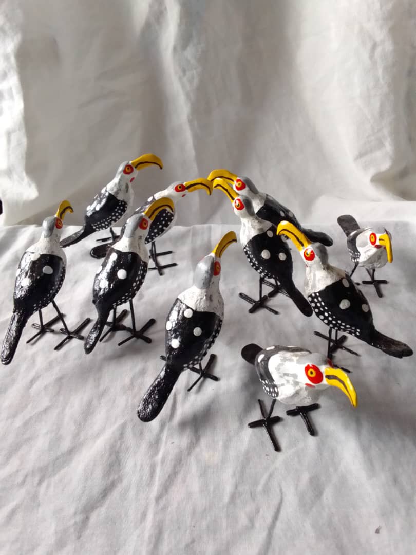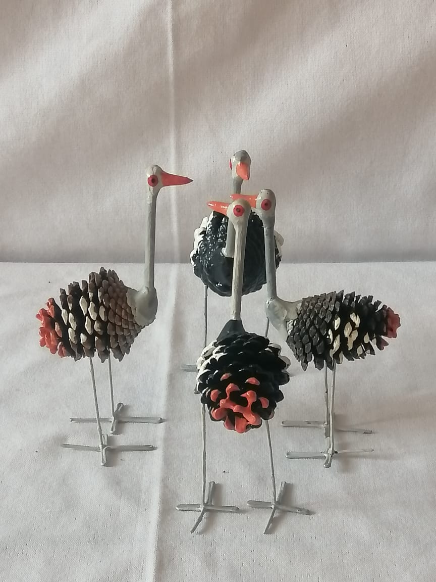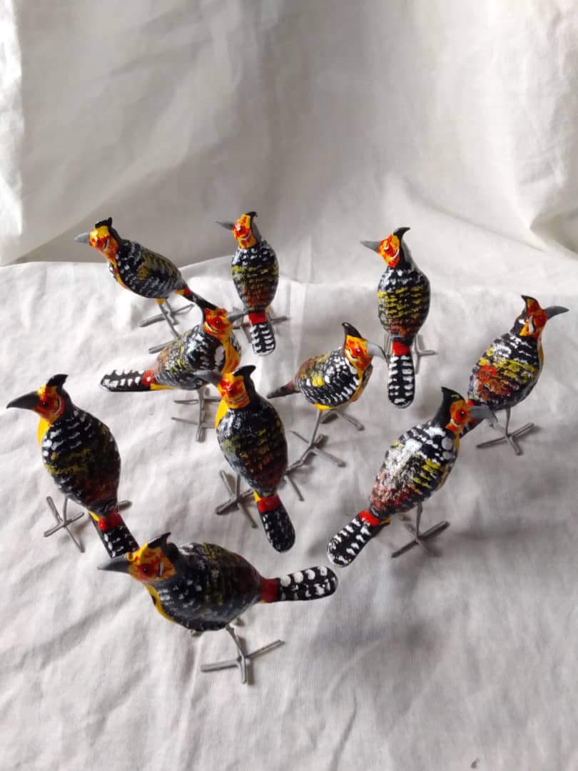 Discover our extensive collection of Seedpod Birds and Animals crafted by Robert Mazwiembiri and his team in Zimbabwe. Using pine cones and seedpods from Ulumbu trees (Sterculia rogersii) which is a deciduous tree found in southern Africa, each piece is meticulously handcrafted, painted, and adorned with vibrant colors. Standing on hand-twisted wire feet, these creations showcase unique markings and poses, making each one a captivating work of art.