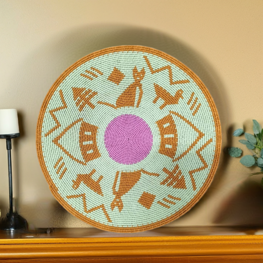 Bring a unique touch of Africa to your home décor with this stunning shallow bowl, expertly crafted by Siphokazi Mlambo from South Africa. The pale green hardwire design features an intriguing selection of colours, adding an unpredictable twist to the traditional story bowl. Perfect for adding a pop of personality to your space, this one-of-a-kind piece is sure to spark conversation and inspire a sense of global style.