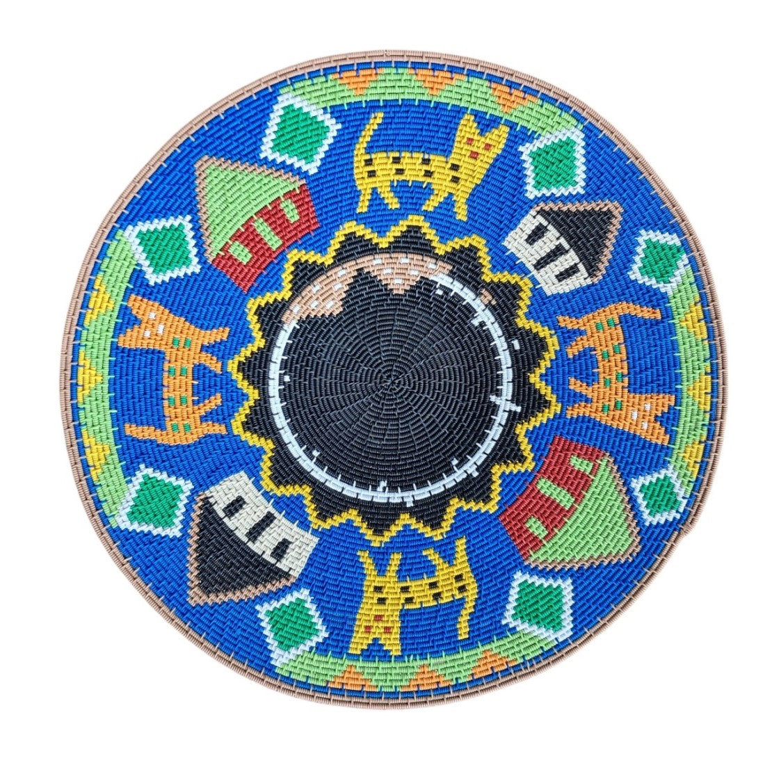 Shallow Hardwire Bowl 33.5cm Blue Pictorial By Nomvuselelo Mthwalo | South Africa.
