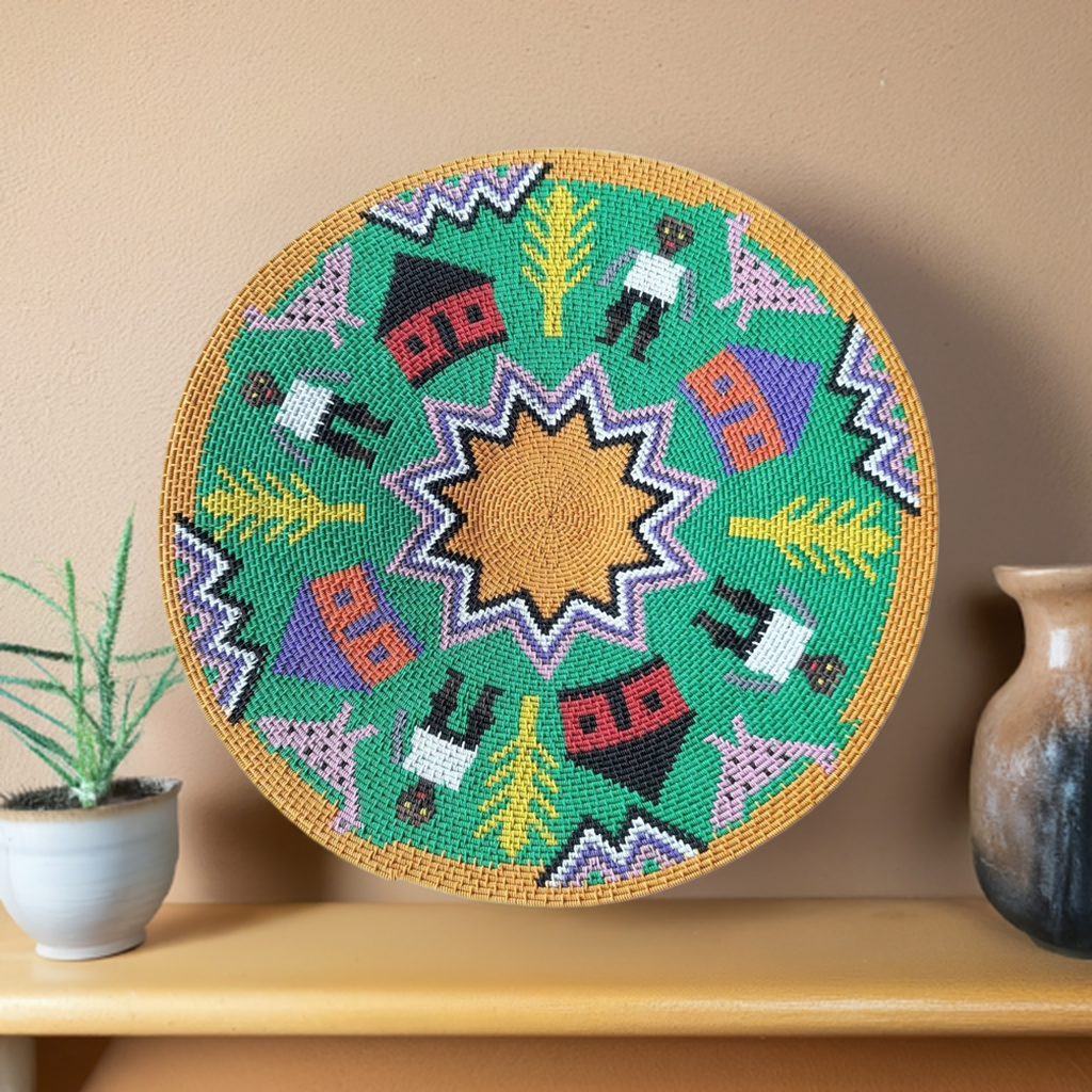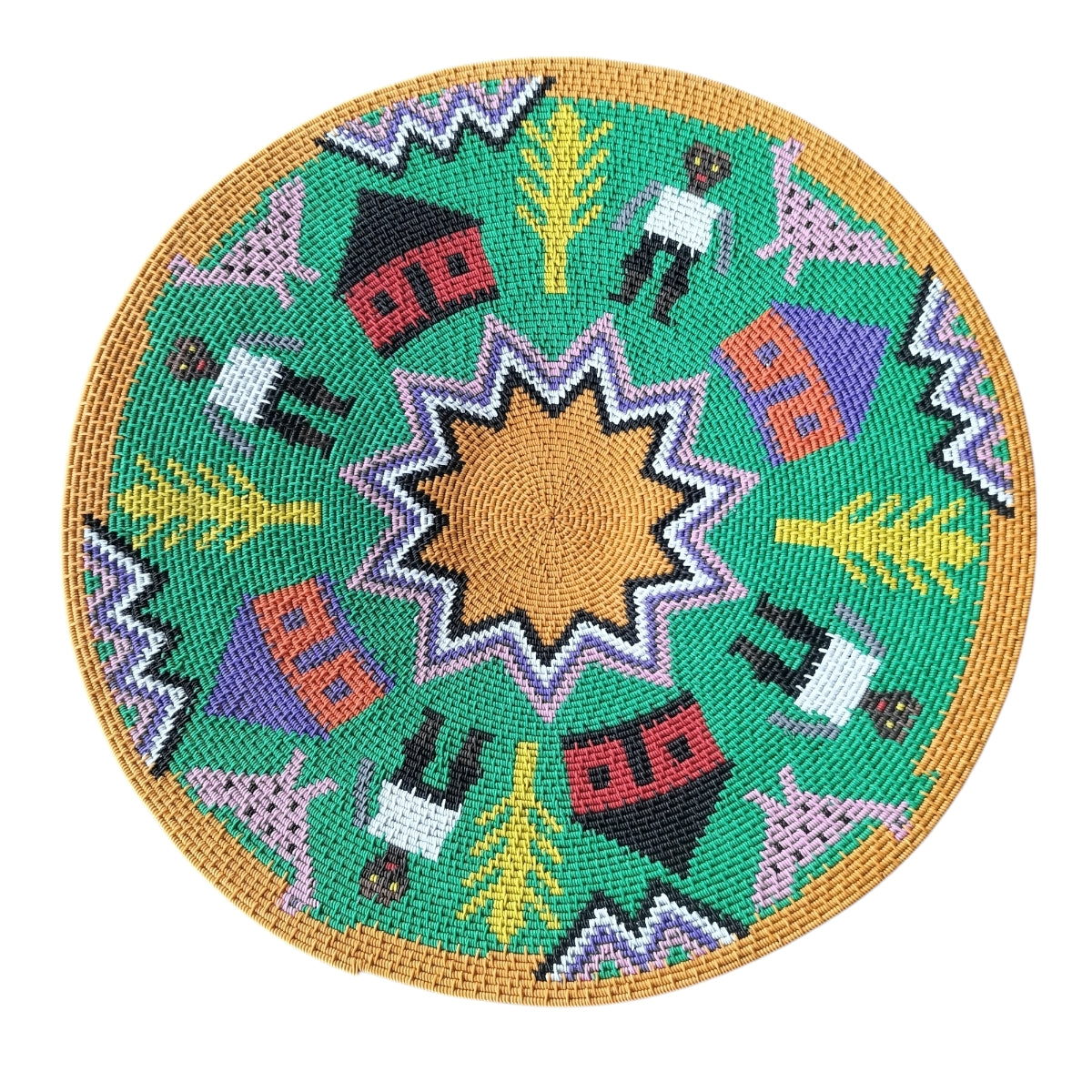Shallow Hardwire Bowl 36cm Green Pictorial WM0082 By Tholakele Dlamini | South Africa