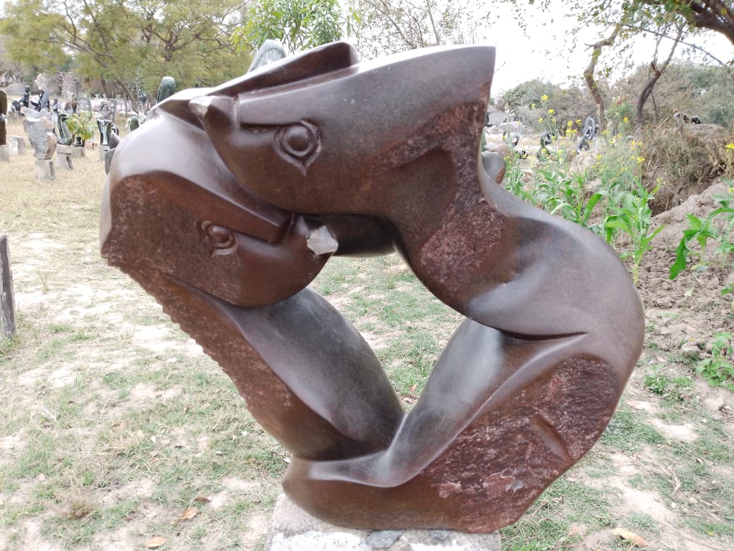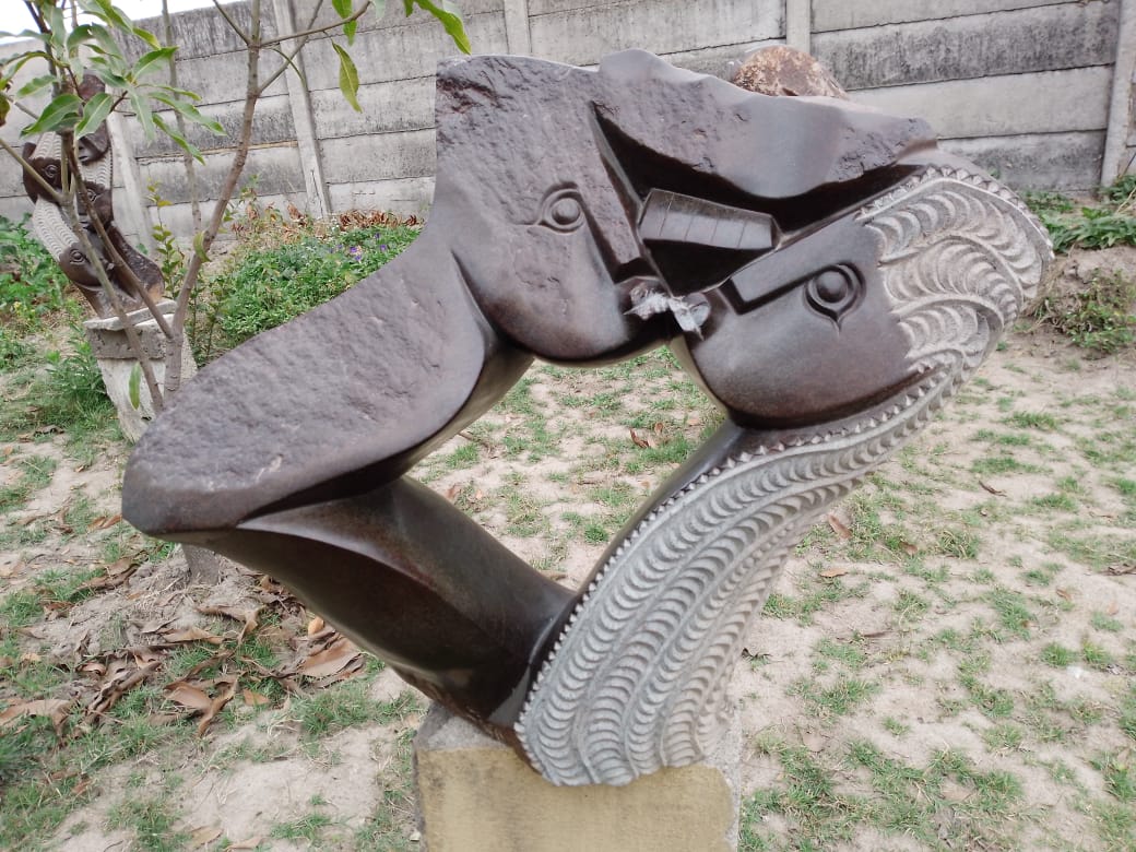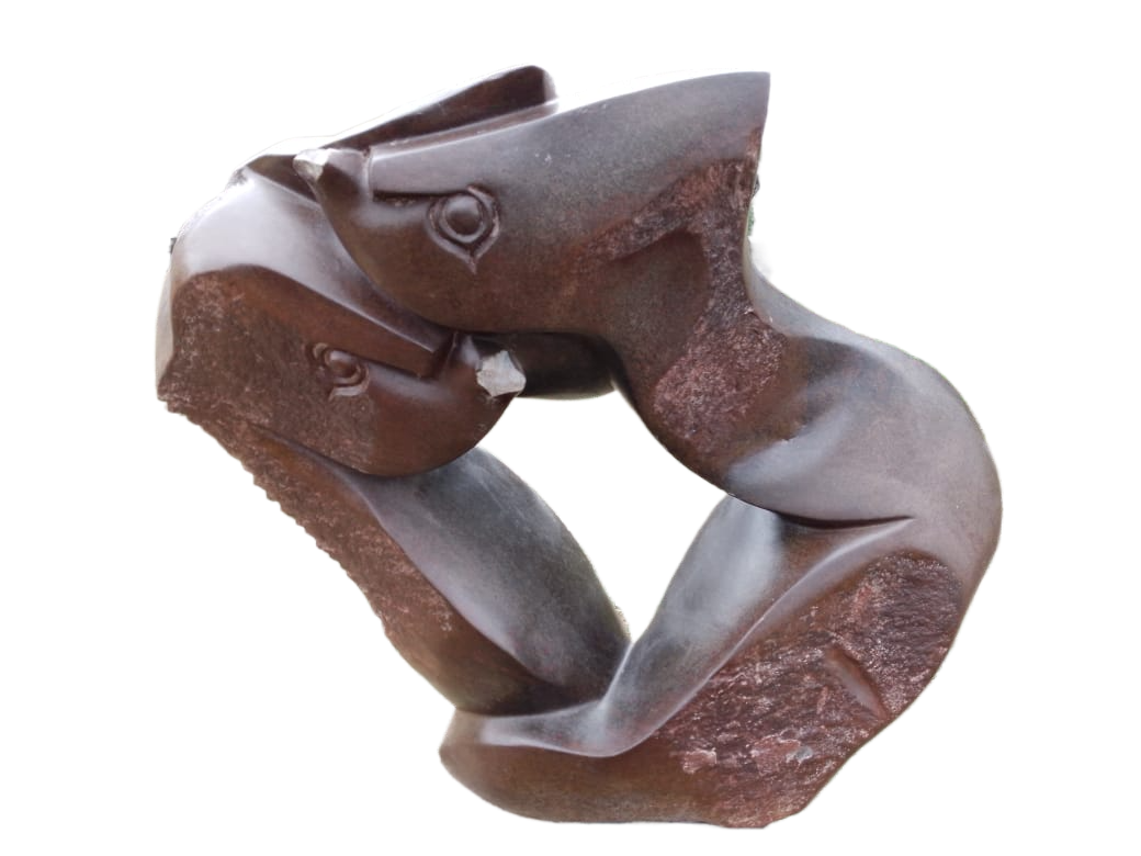 Social Distancing, a stone sculpture crafted from hard Brown Serpentine Rock by the seasoned Zimbabwean artist Eckel Nyamhondoro, serves as a poignant reflection of the global imperative of social distancing enforced during the COVID-19 pandemic. Inspired by this widespread phenomenon, Eckel's artwork conveys a message of hope, emphasizing that even amidst physical separation, the bonds of genuine love remain unbroken.