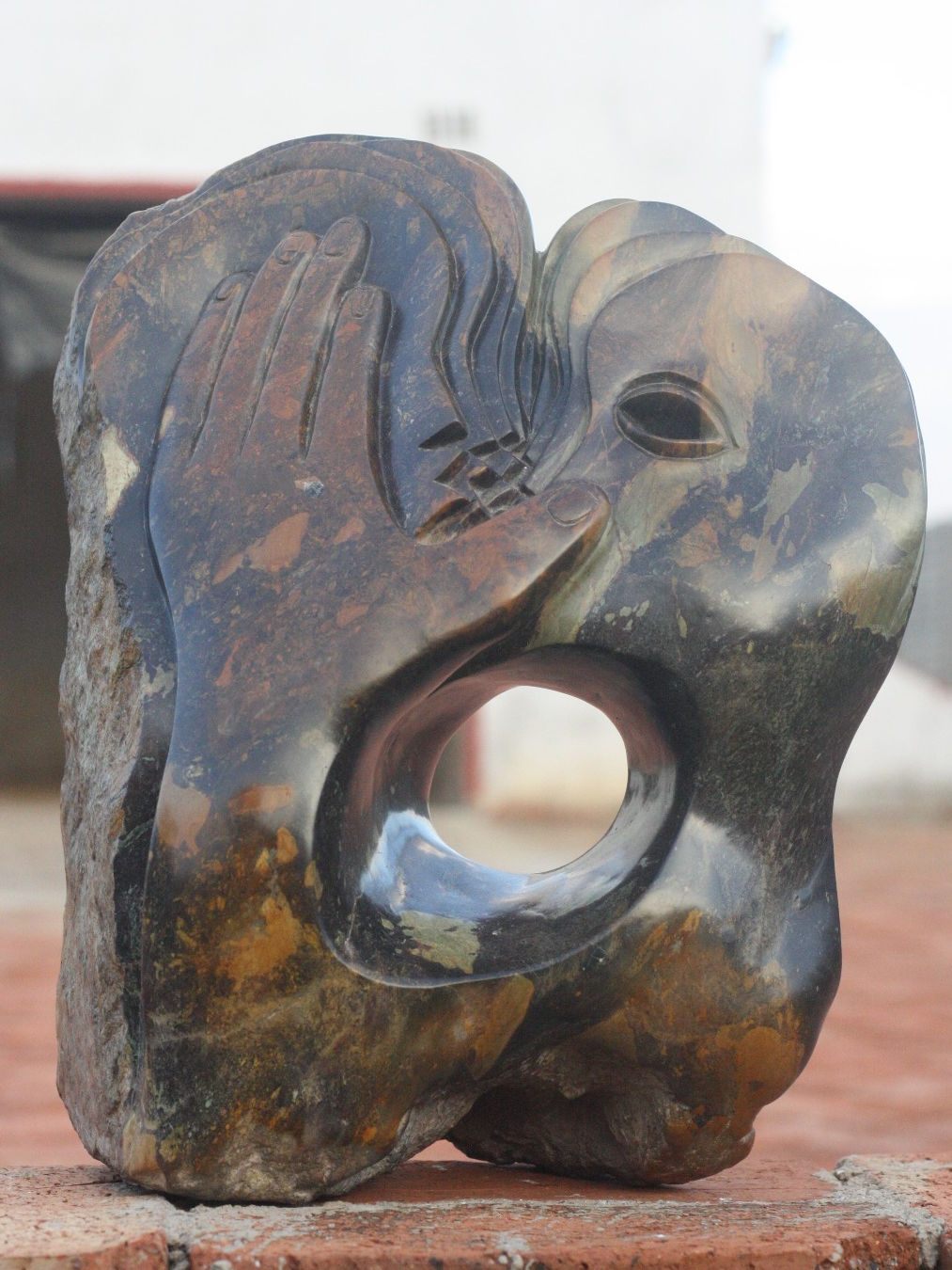 Spiritual Connection - Stone Sculpture Made of Fruit Serpentine Stone by Passmore Mashaya | Zimbabwe