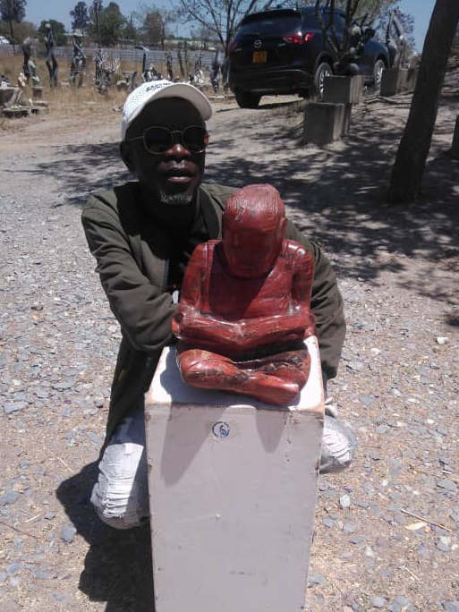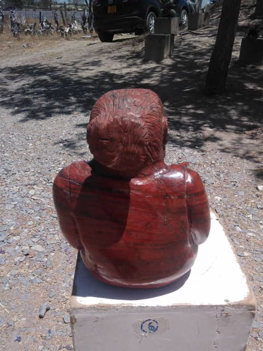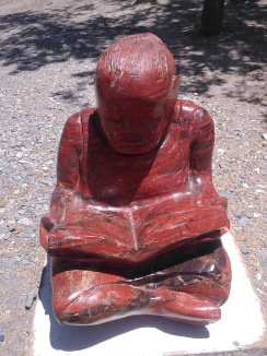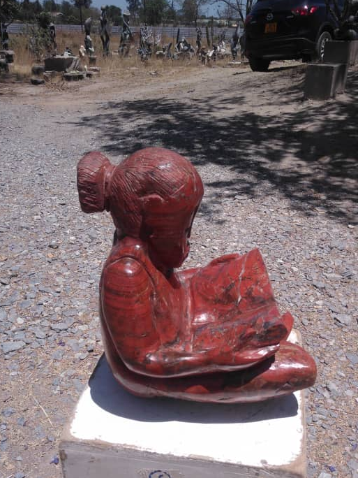 Study Time - Stone Sculpture Made of Red Jasper by Jonathan Mhondorohuma | Zimbabwe